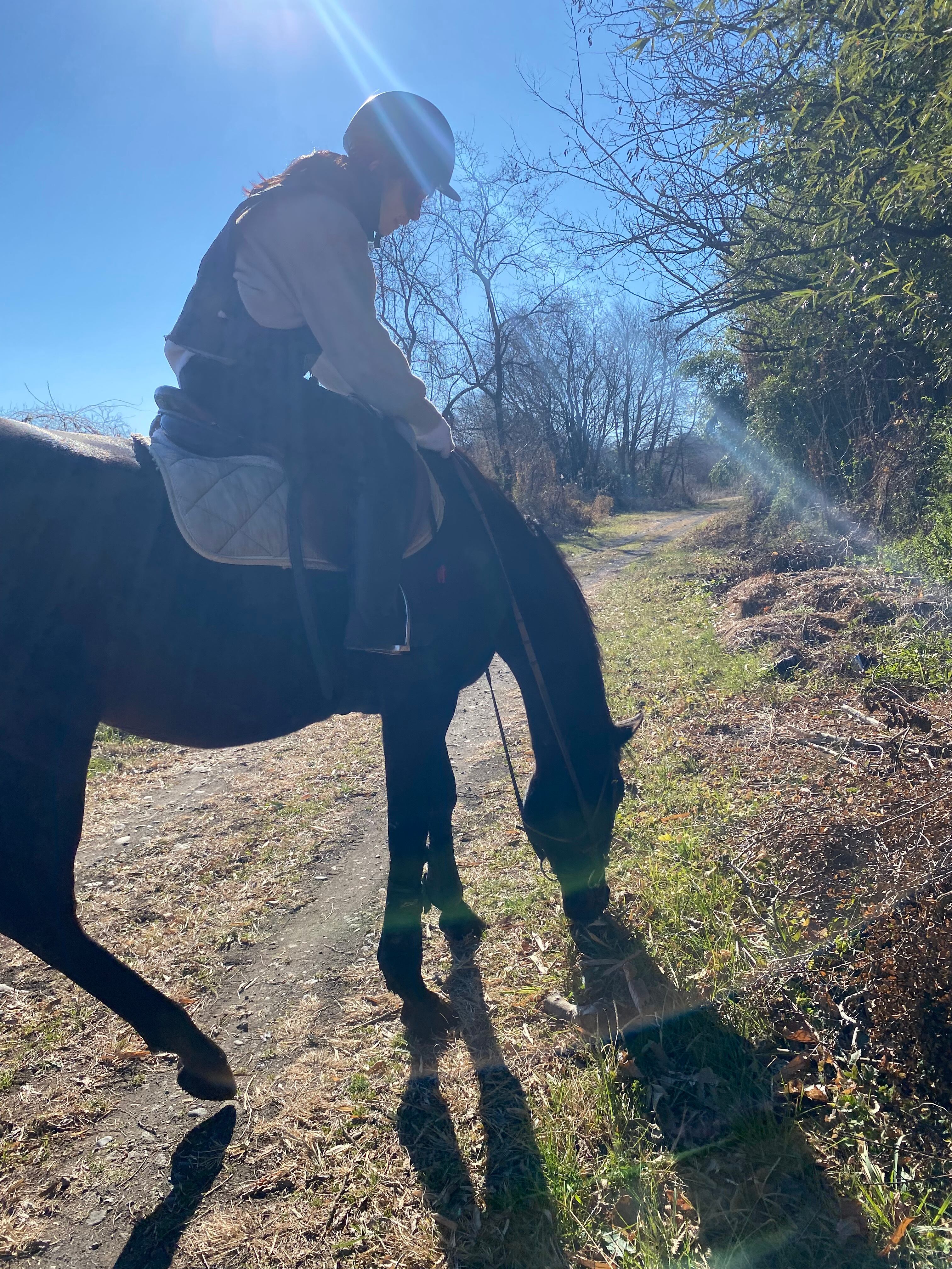 別の乗馬クラブへ移動して利根川河川敷の自然の中へ相棒と共に冒険に出かけます(45分)