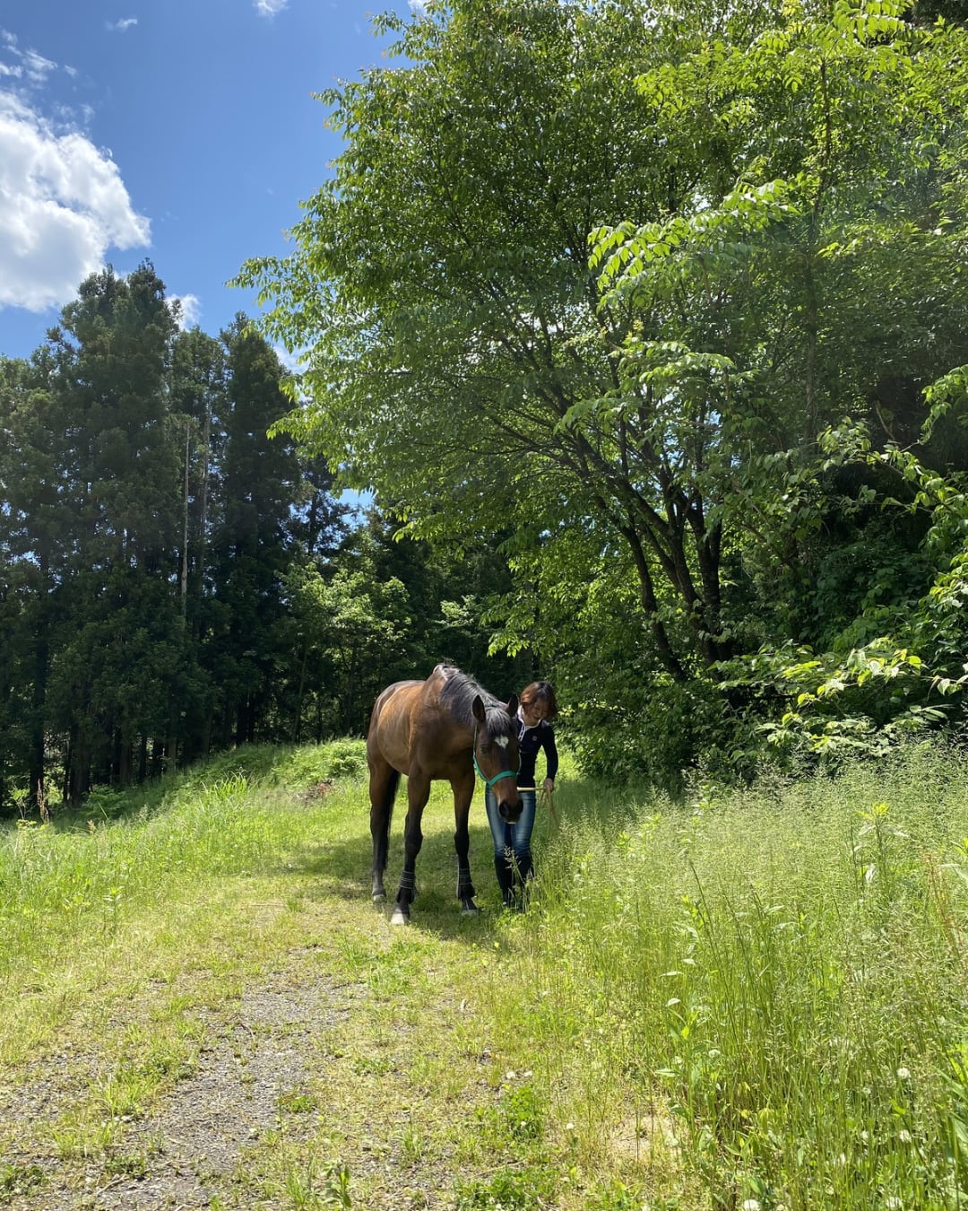 自由にクラブ内で乗馬した後、山道を馬に乗りながらお散歩